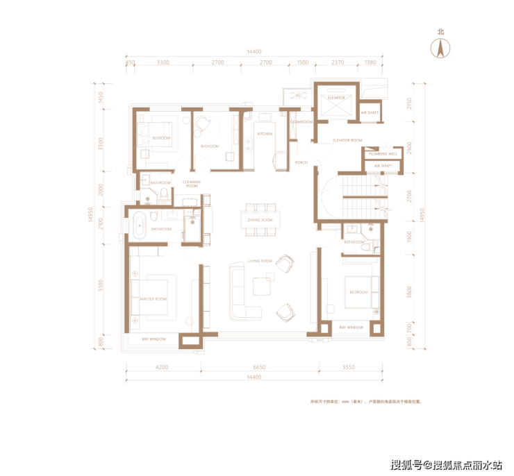 其中首开建面约193㎡的户型,三开间朝南,南向面宽达到了惊人的约14.4米,并打造约6.65米大横厅,尺度感着实令人震惊!