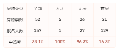 多次开盘均售罄,最近一次项目52套房源共吸引了157组家庭参与登记,中签率33.1%。