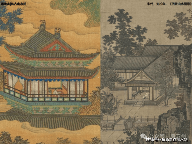 萃取唐伯虎《仿古山水册》三段式经典构图,融合苏式屏风山墙的型物之美,打造联排别墅的建筑形体。