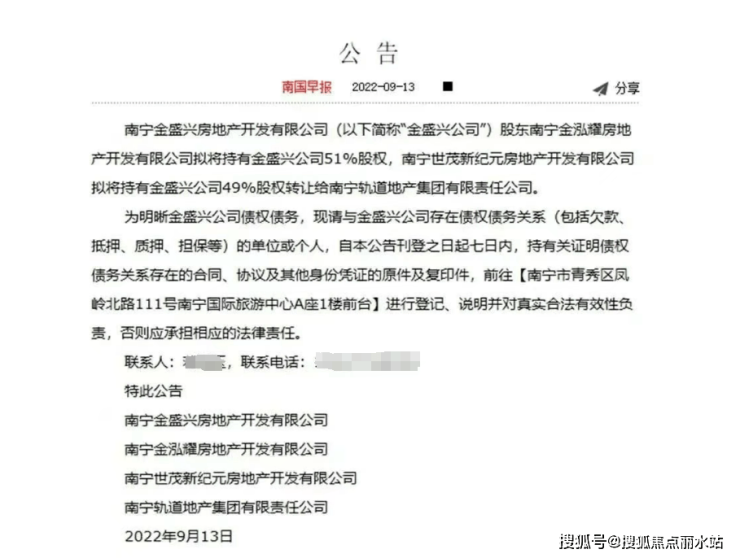 2022年9月,南宁轨道地产集团出手,与金科、世茂签署收并购协议,全资拿下这个位置极佳的一线江景盘,这也是轨道的首个纾困项目。