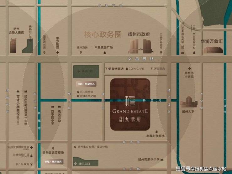 邗城·九章府位于文昌路中轴,当之无愧的主城核芯。扬州最优质、最精华的资源,几乎都聚集在项目周边。