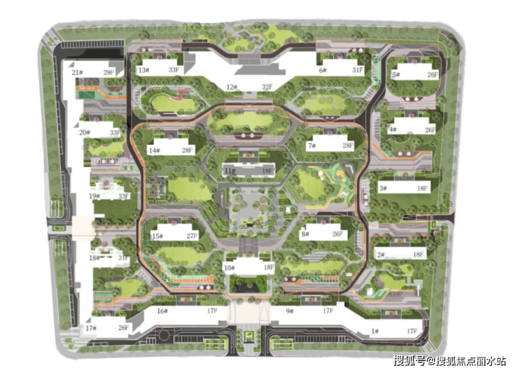 景观园林从品质生活的细节出发,以中心的下沉庭院为核心,形成了“两轴、一核、一环、多节点”的空间布局。下沉庭院、慢跑环、儿童活动区、氧气森林、青年动感地带、颐养花园、公共花房、小果园、酷活健身、邻里交流等应有尽有,满足全年龄层业主的生活所需。