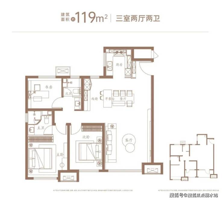 建面约119平米的三室两厅两卫,以超大宽厅和双阳台设计,构建全家互动的完美主场,功能区分布合理,动静分离,赠送空间更多,空间拓展性更强,可改造为四室两厅两卫户型,满足多胎家庭或者三世同堂的居住需求,居住体验和功能性远超市场同等面积段的产品。