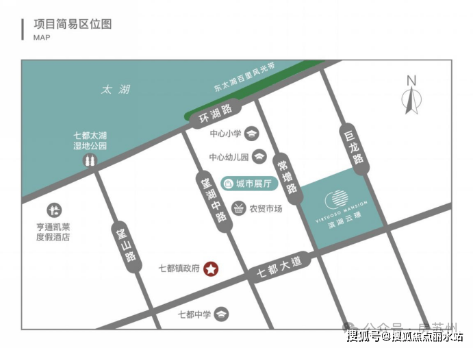 教育高地:临近七都中心幼儿园(约400米)、吴江七都小学(约500米)、七都中学(约900米) 数据来源:百度地图测距