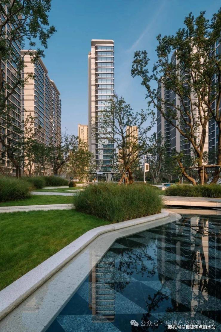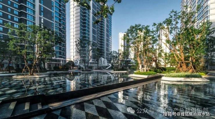 金沙壹号院大门口水系犹如一座漂浮在海洋上的小岛,是景观的一大亮点,富有质感及设计感的精致LOGO在水中静立,成为整个空间的视线焦点,也充分提升景观气质,延续艺术性的同时也烘托出了尊贵的气质。