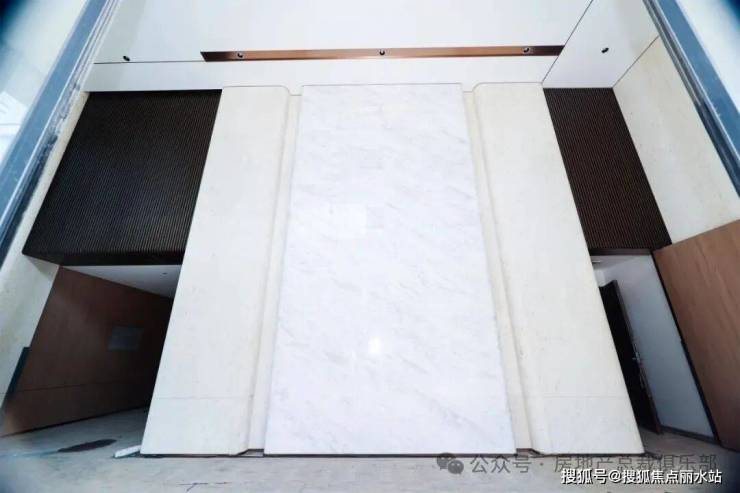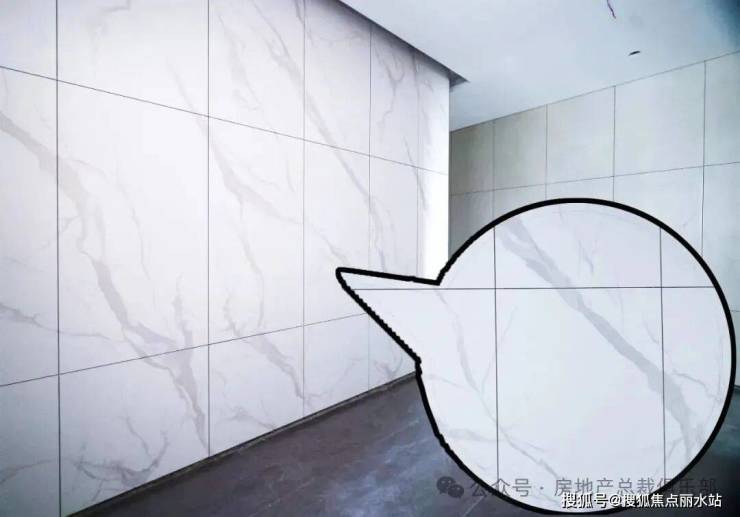 其实公区装修,最难的部分就是连纹砖对纹。大家仔细看左边的墙面,全都是带纹路的,工人铺贴每一块瓷砖的时候,那都是严格按照编号施工的。