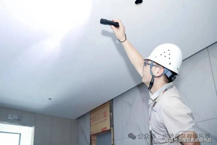 为了验收平整度,验收工程师有自己独特的办法,直接用手电筒贴着墙面,侧向照明,"顶面平不平,骗不了光!"