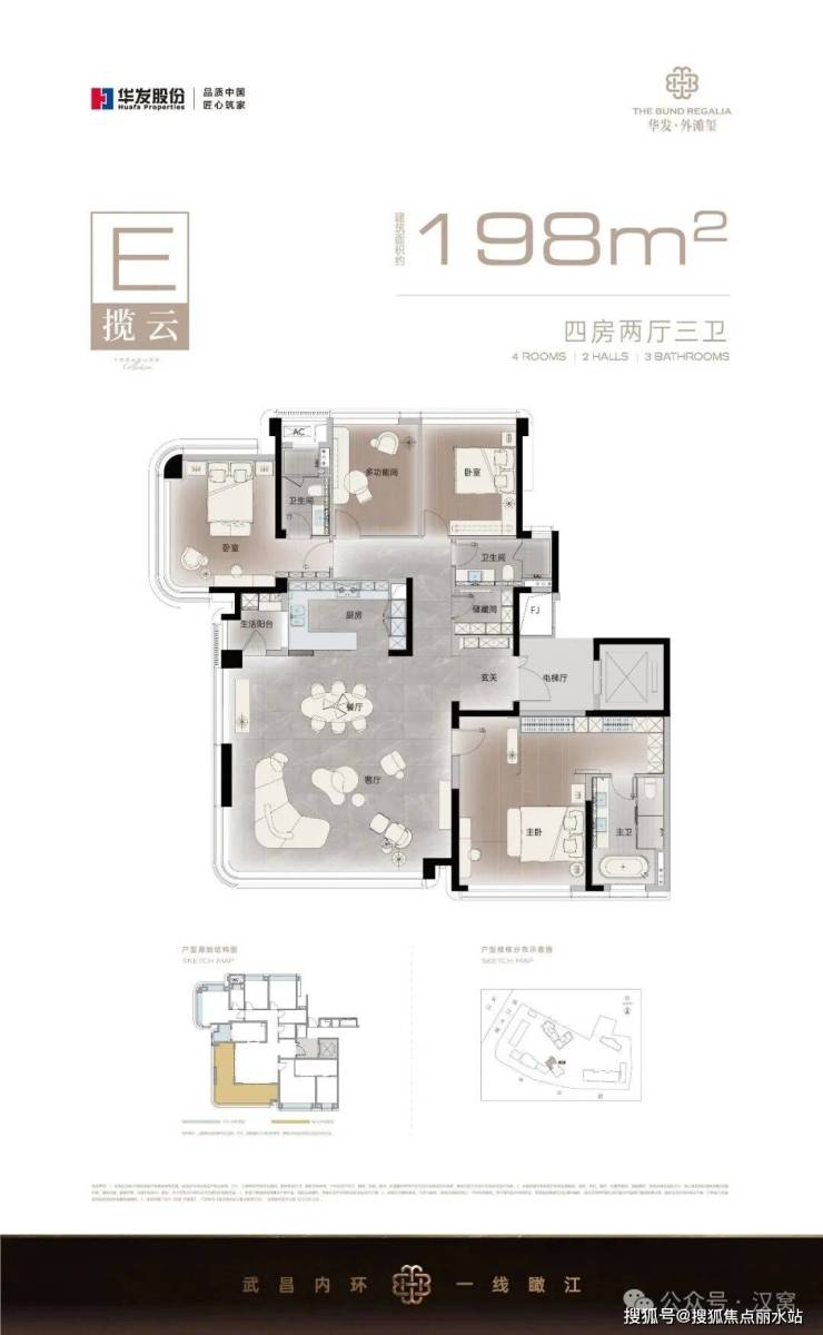 华发新一代智奢产品。以2.98容积率、22-28层舒适层高,打造内环滨江难得静谧奢居;约95-103%综合使用率,阳台、飘窗空间优化,延展生活边界;采用环江景布局设计,最大化保留南向观江面,户户皆享优渥视野。于武昌内环滨江划定峯层生活新维度。