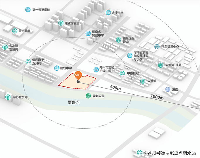 郑州惠济区北大学城板块,对望贾鲁河一线河景,距离惠济区政府约5.0KM、惠济区万达广场约3.4KM、黄河花园口旅游区约 5.5KM,紧邻城市主干道,交通资源完备,教育资源丰富,“自然风光、黄河文化和慢生活”三大特点兼收并蓄,是郑州名副其实的后花园。
