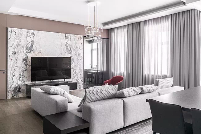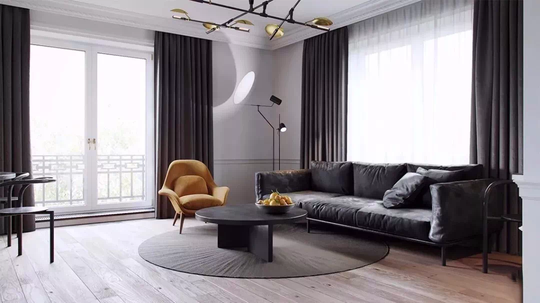 对于喜欢窝在沙发上看电视,将客厅主要当成视听区使用的家庭来说,客厅的光线不宜太强,以免影响到视听效果,建议选择具有挡光、隔热功能的厚棉麻或涤纶材质的窗帘。