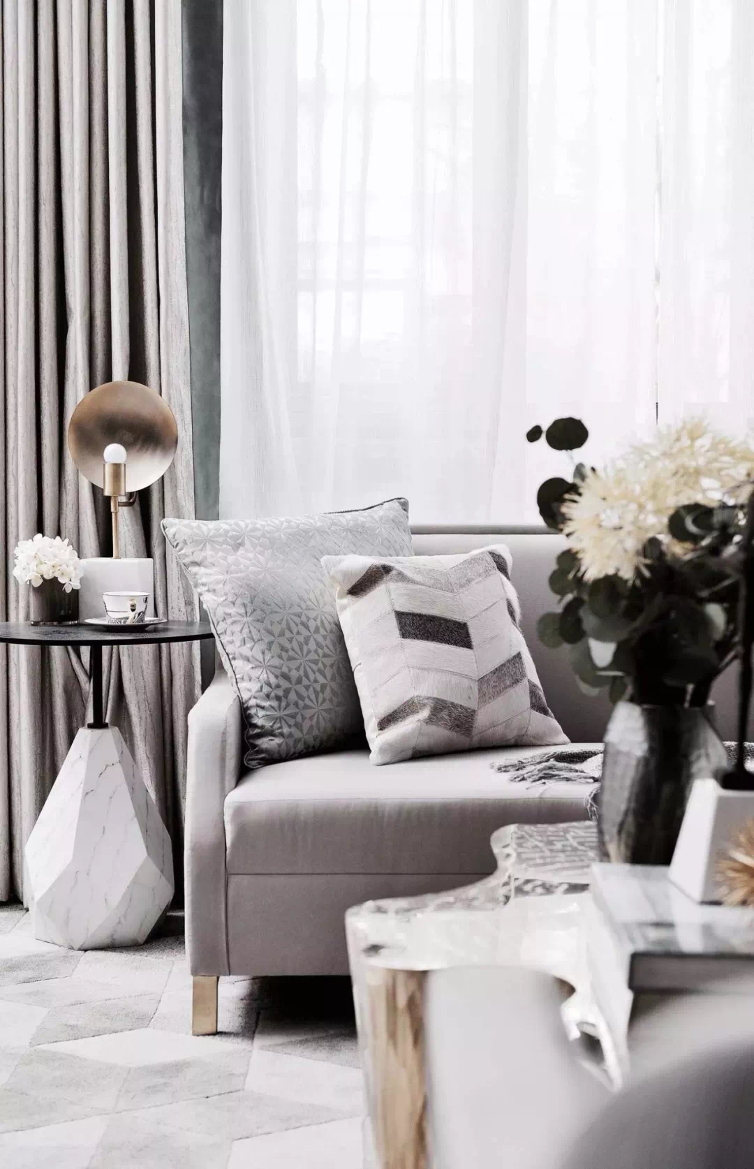 灰色系是一种时下风靡的流行色,它不仅时髦又有气质,而且具有很强的遮蔽效果,运用得好,就可以营造出逼格满满的家居氛围,无形中展现一种低调的奢华。