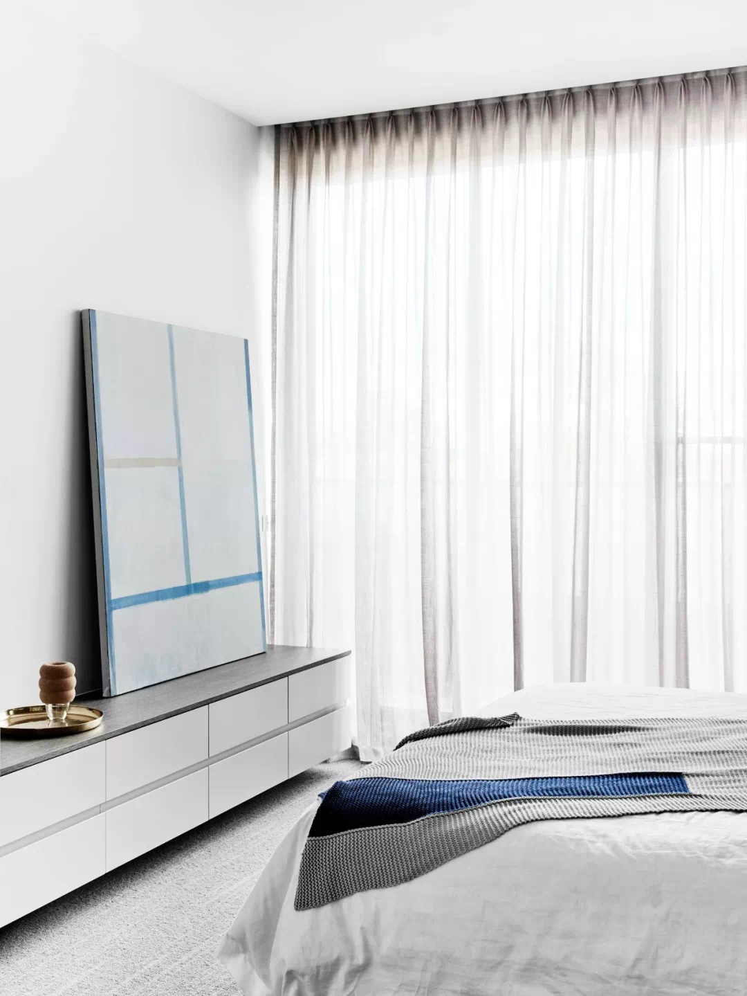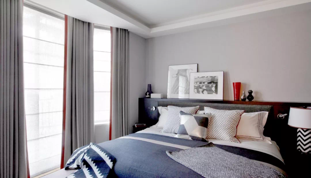 而北向卧室的窗帘就相对来说随意一些,布质垂直帘,透光性较好的风琴帘、卷帘都可以,只要注意控制光线、保护隐私即可。