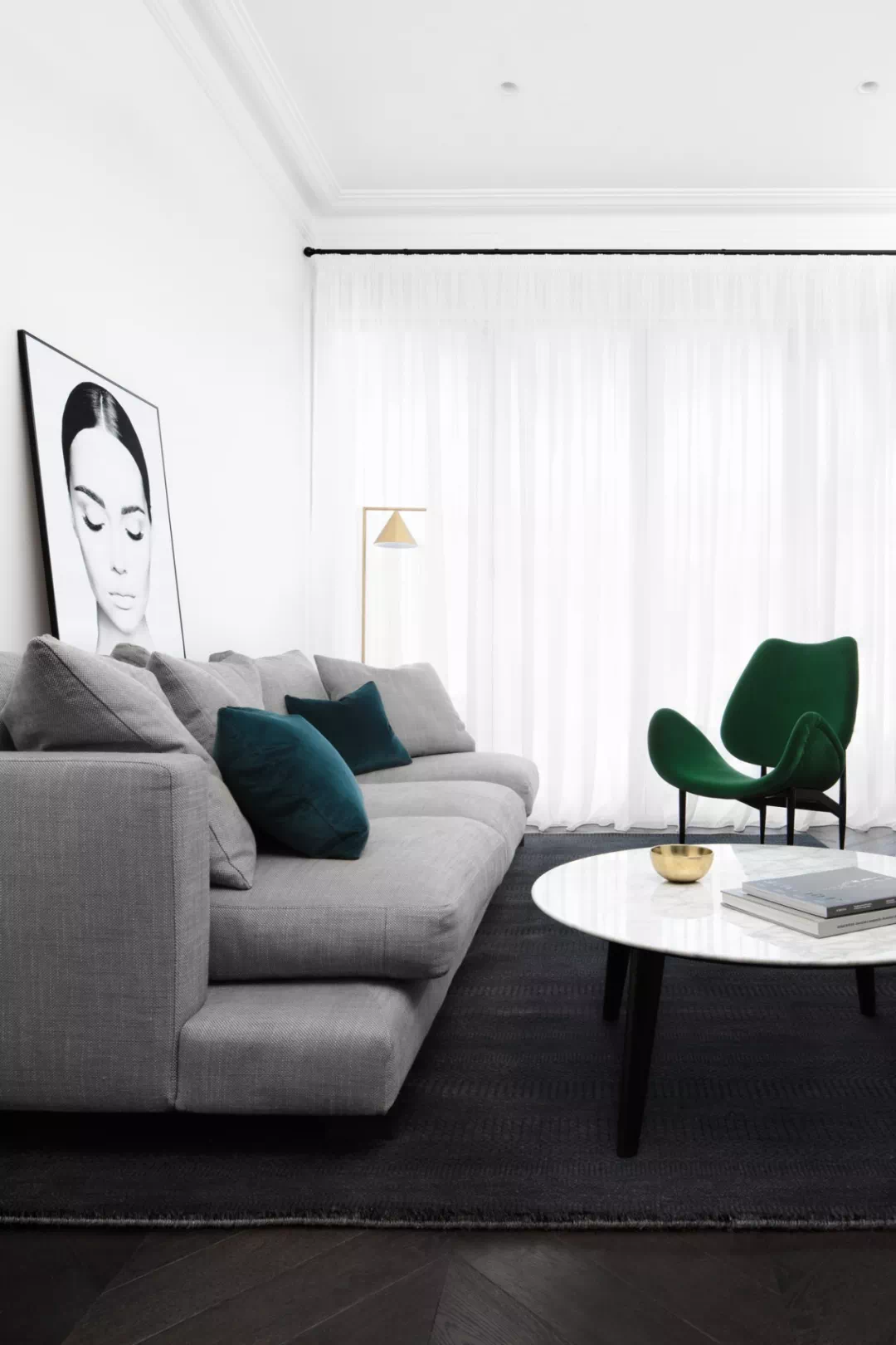 一般情况下,窗帘的尺寸是要依着窗子的大小来决定的,但是为了不影响到悬挂窗帘后的整体美观度,我们较好要遵循一个“ 全能法则”: