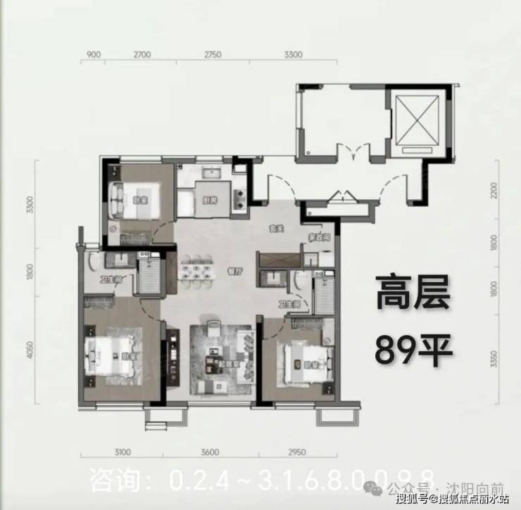 1、沈阳首个百万级青年真四代宅。首置即四代不是梦! 89平三房两卫/102平配空中庭院!