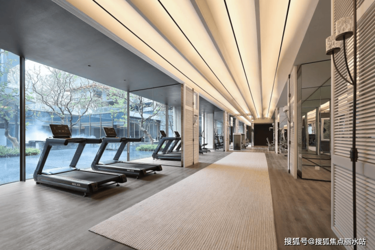 〖健身房〗配备多种类器械,大面积落地玻璃窗的全景视野让运动成为享受。