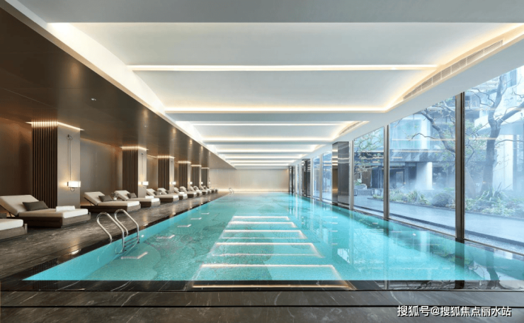 〖室内恒温泳池〗以落地玻璃幕墙将室外风景引入室内,营造出“游弋于天地之间”的独特体验。