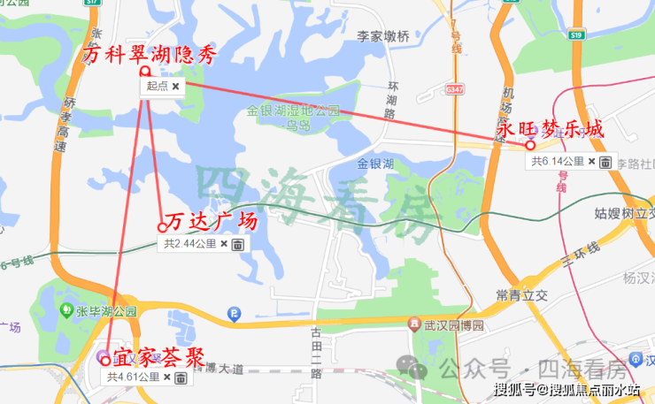 自驾:周边的路况非常好,环湖路、金山大道、联通路等等都非常漂亮,一路都是风景,沿环湖路可以直接上金山大道,连通东西湖临空港和汉口常青板块,向北转可以到马池路,至金银潭板块。