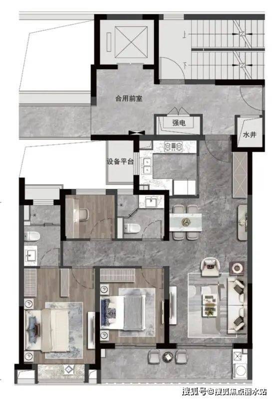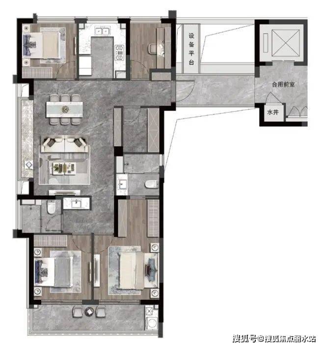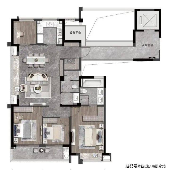 四房两厅两卫,边厅,三房朝南,开间大,尺度阔绰,居住舒适度高。