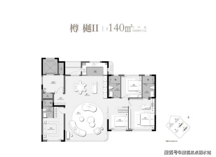 建面约96平带电梯前室、建面约119平大横厅+标准四房、建面约140平四房三卫……