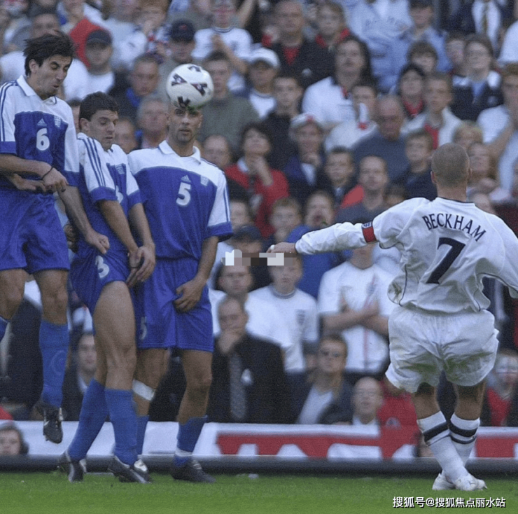 2001年10月6日,英格兰对阵希腊,贝克汉姆在补时阶段主罚的任意球,皮球划出了一道美妙的弧线后落网,