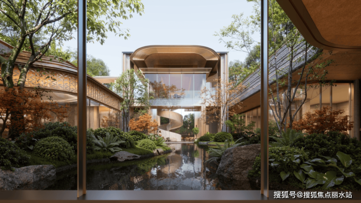 君一雲启所传递的,不是传统意义的“豪宅感”,而是一种兼具归属感与文化感的“隐奢生活哲学”。地上六边形全景会客厅中央浮岛搭配整个下沉式庭院,流水、叠瀑、庭院……满满松弛感。