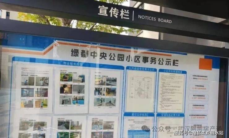 绿都中央公园配置的是自己的绿都物业。小区物业服务中心门前的宣传栏上,清晰地公示了物业各项工作计划和公共收益收支情况。该小区交付只有一年多,业委会尚未成立,主动公布公共收益收支情况,可说相当靠谱了。查询可见,绿都物业为全国百强物业,连续多年服务满意度处于行业领先水平。