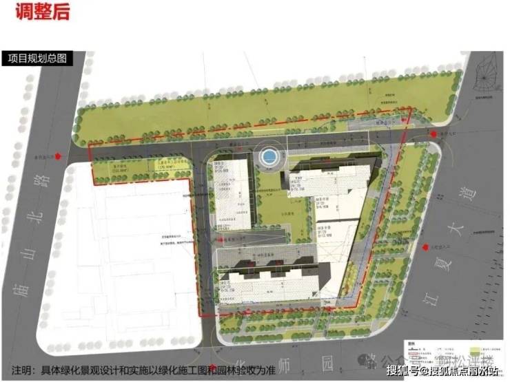 从平面图看,项目地块东侧临江夏大道(民族大道),南侧临华师园路。地块东侧、南侧分别预留有约30米宽、约20米宽公园绿地。两栋住宅均为南北朝向。东侧民族大道为主干道,车流量大,且有武咸城铁高架,噪音和灰尘影响不小。