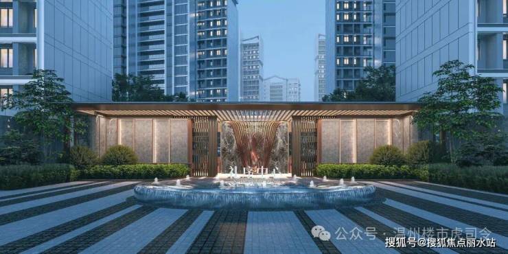 奢华公区 小区东门 建筑面积约150方显赫归家大堂-谧境迎宾水景-仪式中轴-静美风雨连廊-朗阔单元门厅 一步一景,五重归家礼序,匹配大家气度与格局。