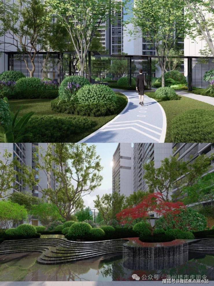 精心配置风雨连廊空间,遮阳挡雨,让归家更从容,同时赏景、漫步、游憩,增添邻里交流互动空间。精心规划多处迎宾水景,打造林光水色的“林泉高致",家里的公园景观。