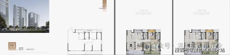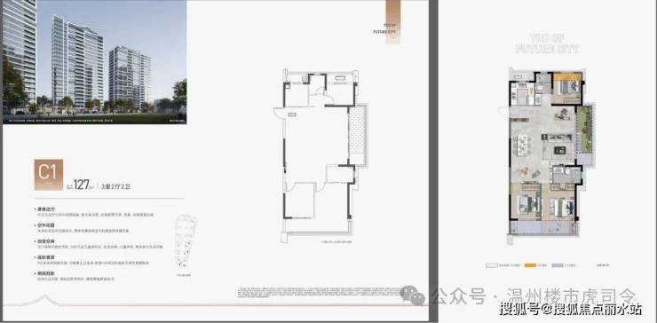 ③C1户型:建筑面积约127㎡ 3室2厅2卫 创变空间花园边厅 高阶套房奢景边厅 空中花园 创变空间 郎阔双卧 高阶套房