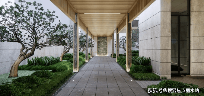 目前,项目大门已经有了初步的样子,因为是杭州出台计容新规后的新房项目,潮语臻境府整体做了抬升,首层打造车库,在此之上做了4.8米高的架空层。