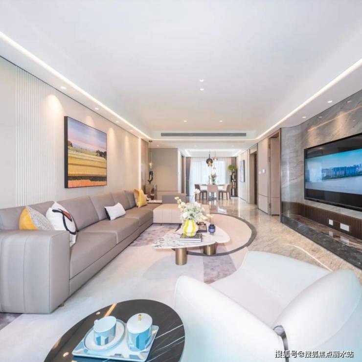 ◆ 餐客一体无界生活厅,阔绰空间尺度,演绎生活的温情。