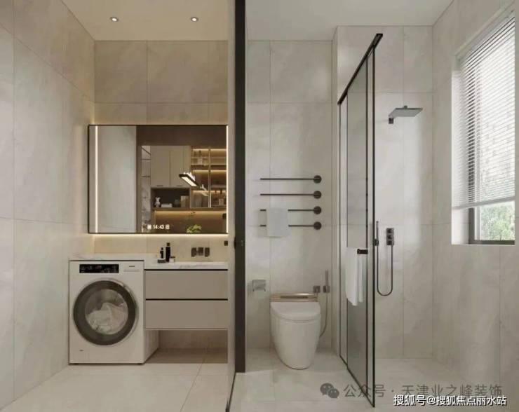 卫生间均实现干湿分离设计,灰色地砖通铺简洁耐看。其中一套做三分离布局,功能分区明确,进一步提升使用效率与舒适度。