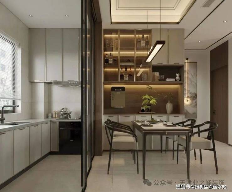 相邻厨房安装三折推拉门,开合自如,巧妙实现传统与现代的和谐对话。