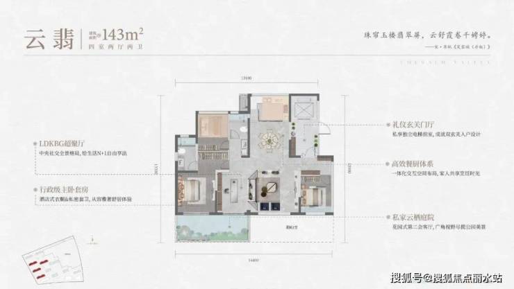 建面约143㎡的四房两厅两卫,以令人惊叹的约105%的得房率,实现了真正的空间跃级。