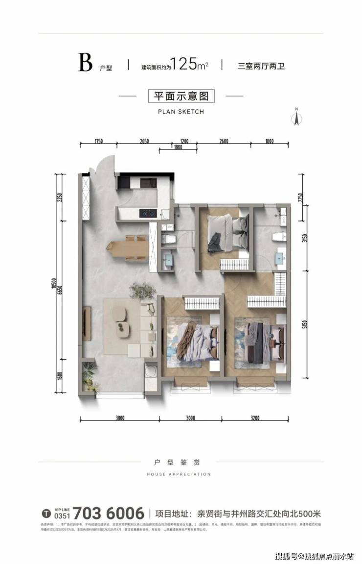 户型二:3室2厅2卫(125㎡)