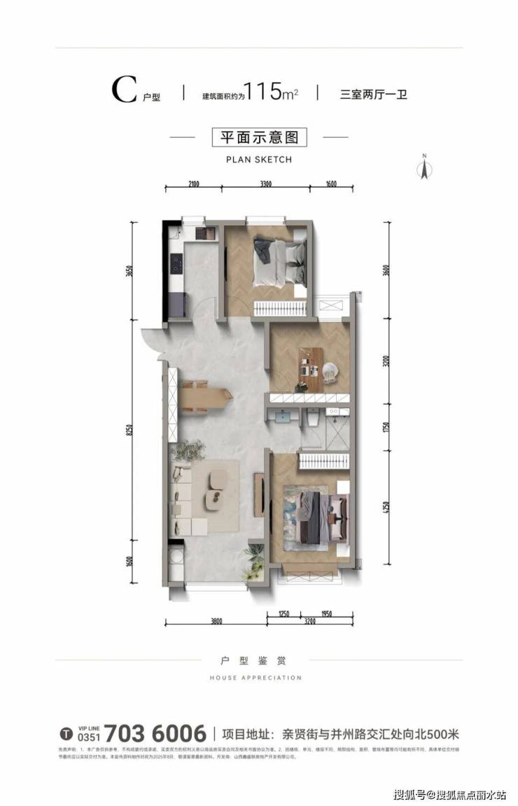 户型三:3室2厅1卫(115㎡)
