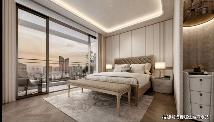 4.2米面宽(约40㎡)主卧奢阔套房,客厅结合X空间设计9.3米超大面宽巨幕空间,以270°落地玻璃设计打造极致的视野效果。同时以同类竞品主卧尺度设计5.5米*4.2米次卧,形成双主卧套房设计,更显产品的极致隐奢定义。