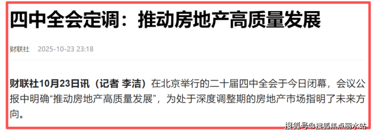 前两天(10.20-10.23),中国共产党第二十届中央委员会第四次全体会议在北京举行。在加大保障和改善民生力度,扎实推进全体人民共同富裕方面,全会特别提到,推动房地产高质量发展