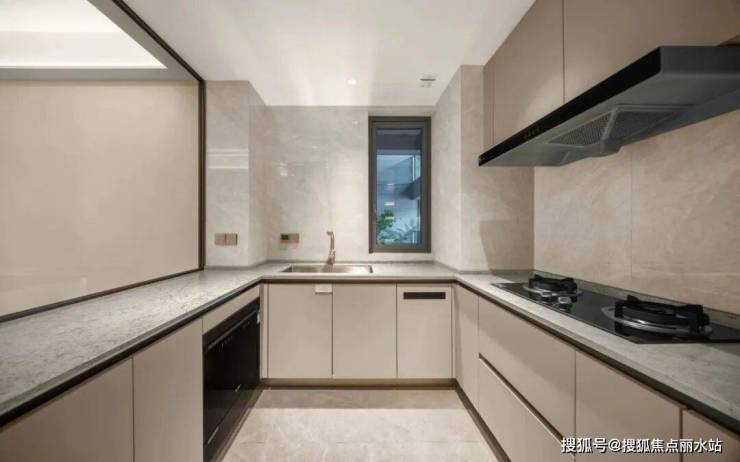 原本厨房的冰箱位,用玻璃墙作为隔断,既保持厨房台面的完整,形成U字动线,也可保持视线与光线的通透,一抬眼就看得到客厅。