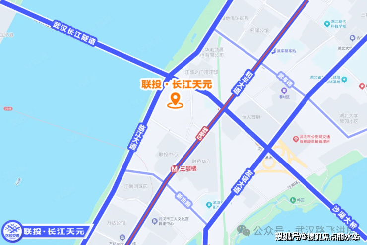 自驾:项目楼下就是临江大道,东侧靠近和平大道,北面还有长江隧道,附近友谊大道、武汉大道等主干道环绕,自驾较为便捷。