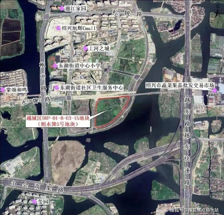 项目坐落于越城区东湖街道则水牌5号地块,东至袍中路,南至湖滨路,西至东湖路,北至则水牌路。