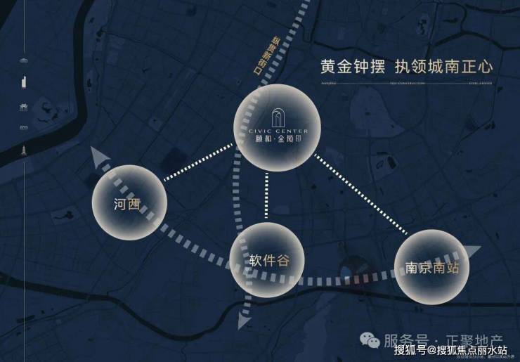 1 号线、10 号线在此交汇,四站地铁范围直达新街口、河西、软件谷、南京南站四大核心圈,文化、交通、商业、产业等资源高浓度聚合,启幕生活的丰盈盛境。
