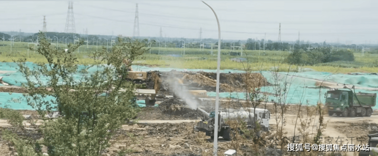 就在近期,有消息称该地块开始动工,从现场照片来看地块表面已经铺设绿网,卡车、挖机、雾炮车等都在运作。