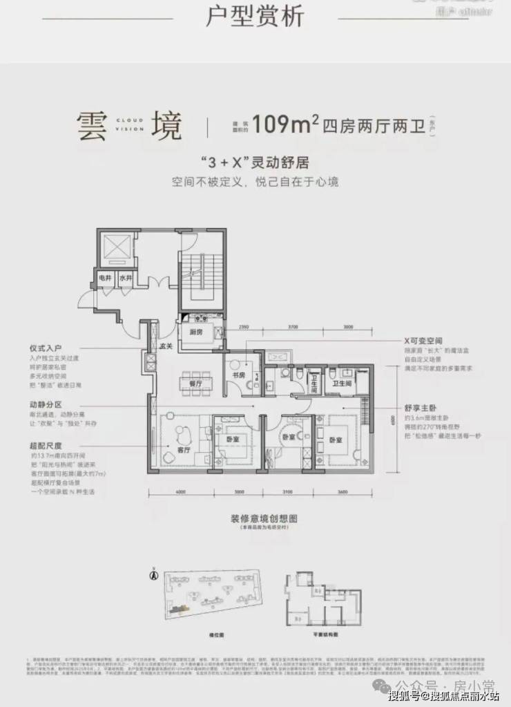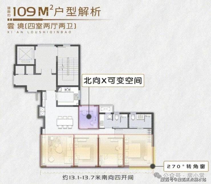 109平3+1,主卧转角采光,两梯四户