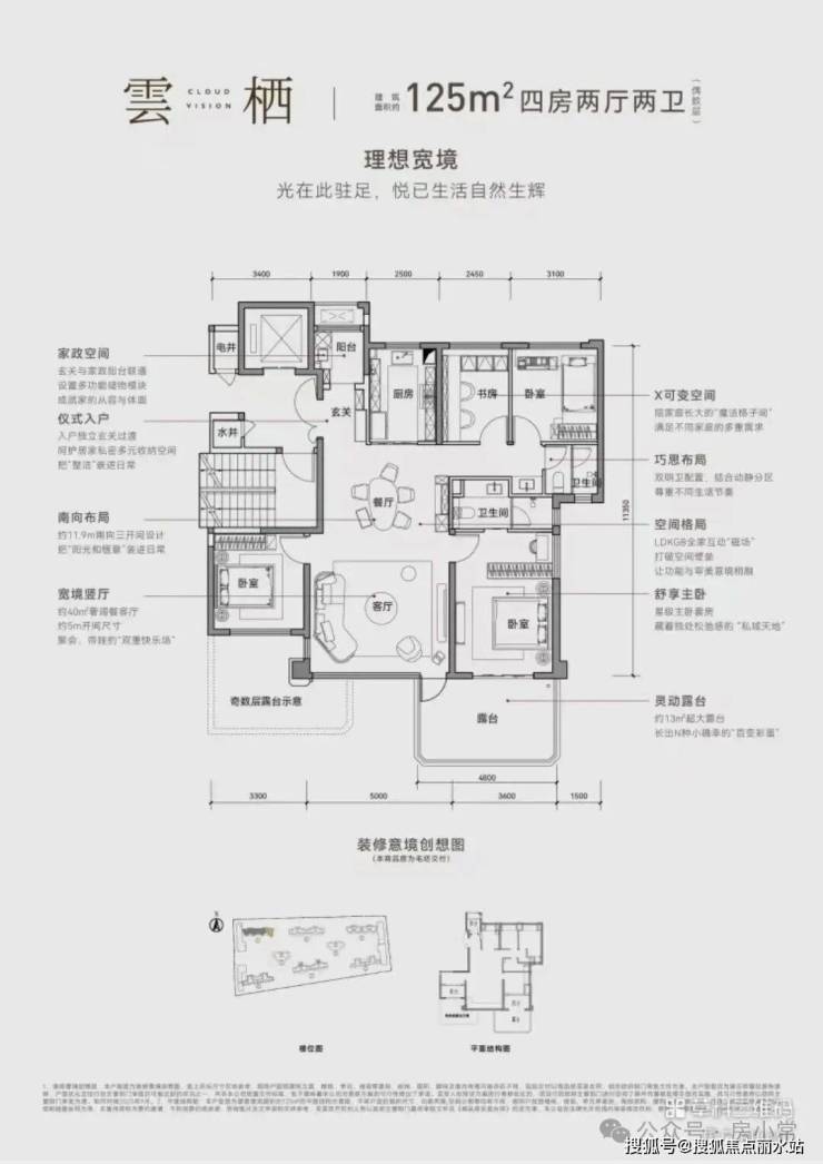 125平四室两卫,得房110%两梯两户