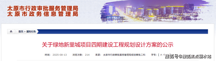 2025年8月13日,太原市行政审批服务管理局发布《关于绿地新里城项目四期建设工程规划设计方案的公示》(以下简称“公示”),标志着这一备受关注的项目进入新阶段。