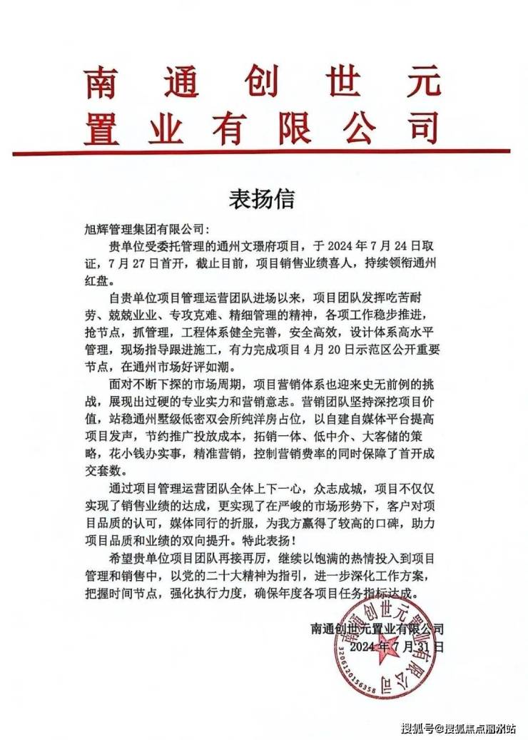 对于项目首开取得的成绩,委托方南通创世元置业有限公司表示高度认可: