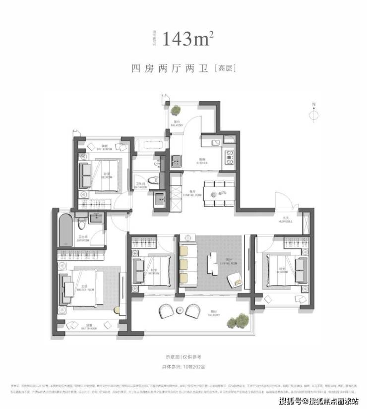 户型面积:约136/143m²(高层)、约165㎡/195㎡ (洋房)