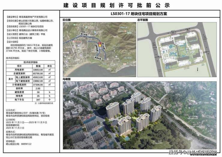 2025年11月3日,青岛市自规局官网公示王家村LS0301-17地块住宅项目的规划方案。